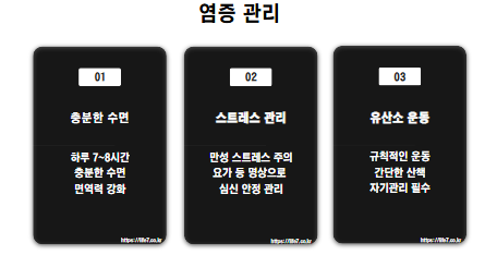 | 비타민 D | 햇빛, 계란노른자, 보조제 | 면역조절, 염증완화 |